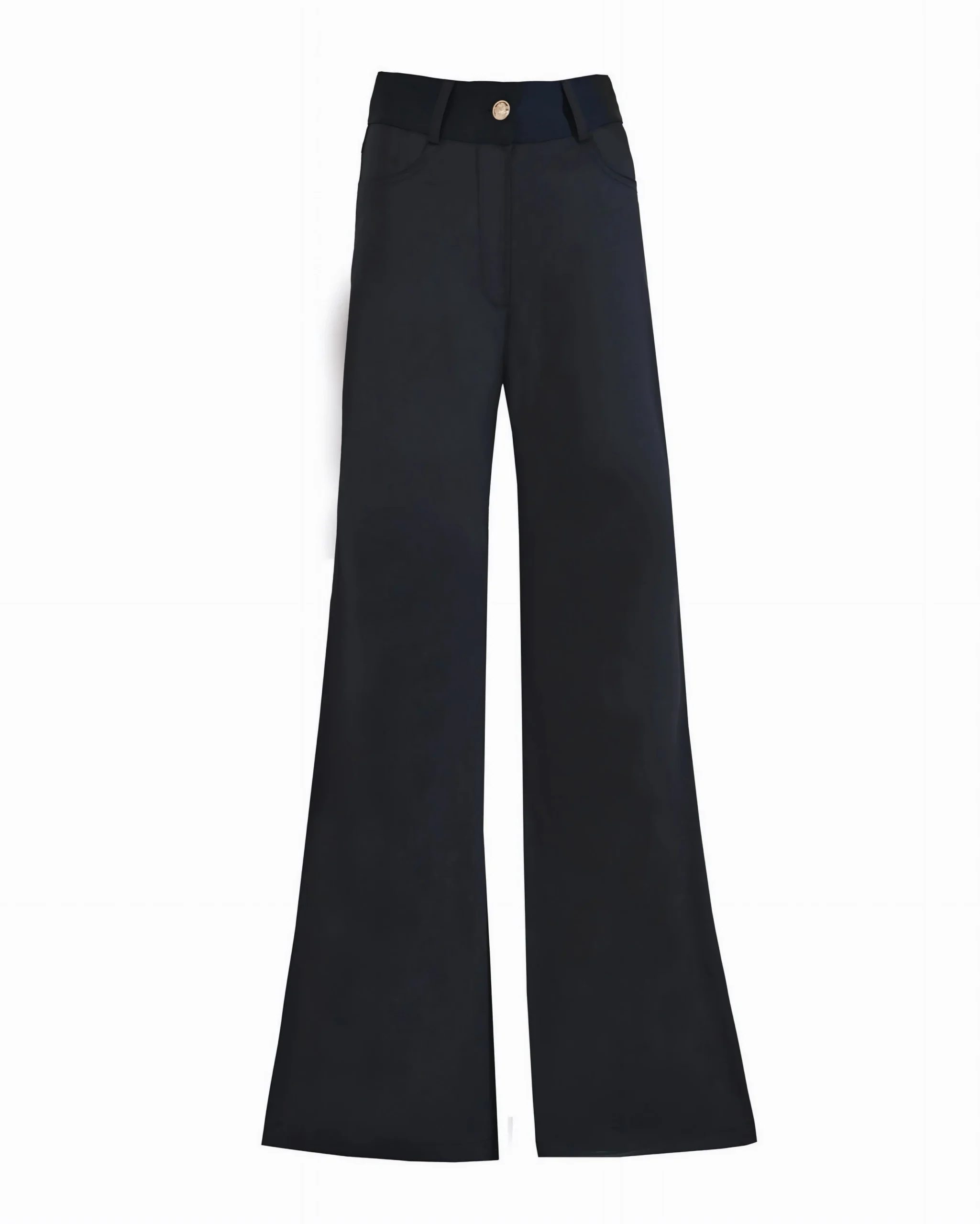 The trousers are crafted with exclusive tailoring to softly enhance the natural lines. Worn loose with heels, they visually elongate the legs; by tightening the hidden elastics, they transform into an Aladdin-inspired style while preserving the flawless hemline.